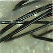 髪の毛全体に樹脂が覆い被さっている状態、全体的にべたついている