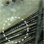 毛穴に樹脂・汚れが詰まっている状態