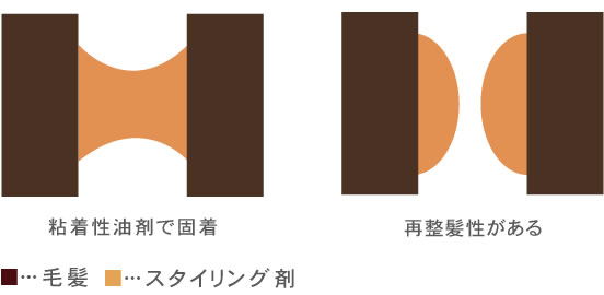 粘着性(油脂、ポリマー)によるキープ力でセットするスタイリング剤